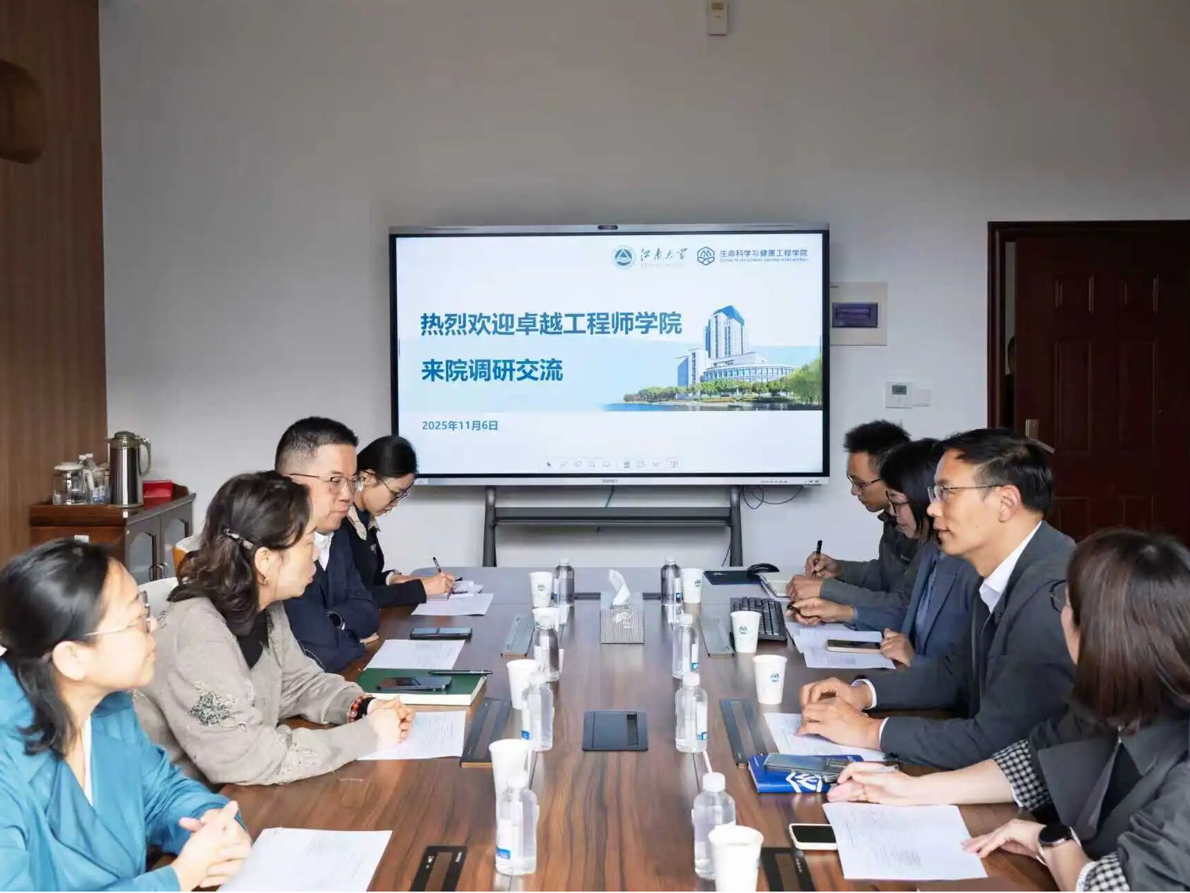 在生物工程学院,学院党委书记程捷音等接待我院调研团队,党委副书记兼副院长林丹、副院长陈晟等参与座谈交流。生工学院与会人员围绕卓工项目推进建议加大招宣力度、强化学院之间的协同配合,此外还聚焦项目实施关键环节,在企业课题匹配与承接、校内导师积极性调动、校企导师合作适配、联培企业吸纳等方面提出针对性的意见和建议。