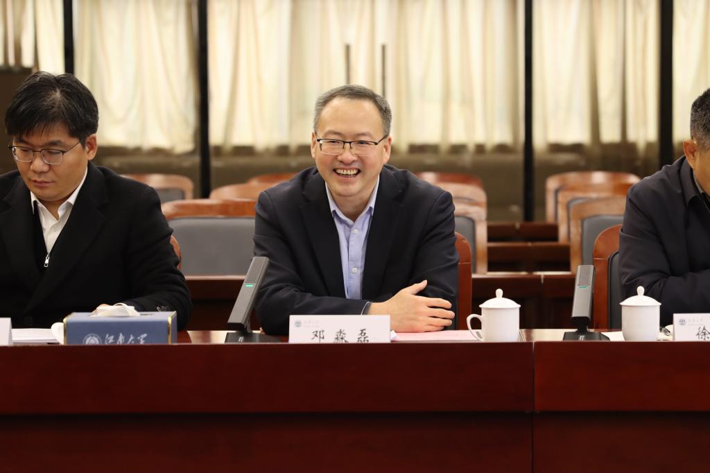 马鑫对邓淼磊一行来访表示热烈欢迎,并介绍江南大学研究生工程教育四十余载发展历程、学校政产学研用融合创新机制及国家卓越工程师学院建设成果。他期待两校之间持续深化多领域合作。吴小俊阐述我校国家卓越工程师学院的建设思路与实践,包括紧扣国家战略,立足优势学科,构建校政企协同育人机制,打造“1+N”“N+1”联培模式等。