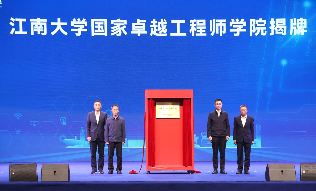 大会最后,蒋锋、郝彤亮、张浩、陈卫共同为江南大学国家卓越工程师学院揭牌,这标志着江南大学高水平工程硕博士人才培养和国家卓越工程师学院高质量建设发展由此迈入崭新的阶段。