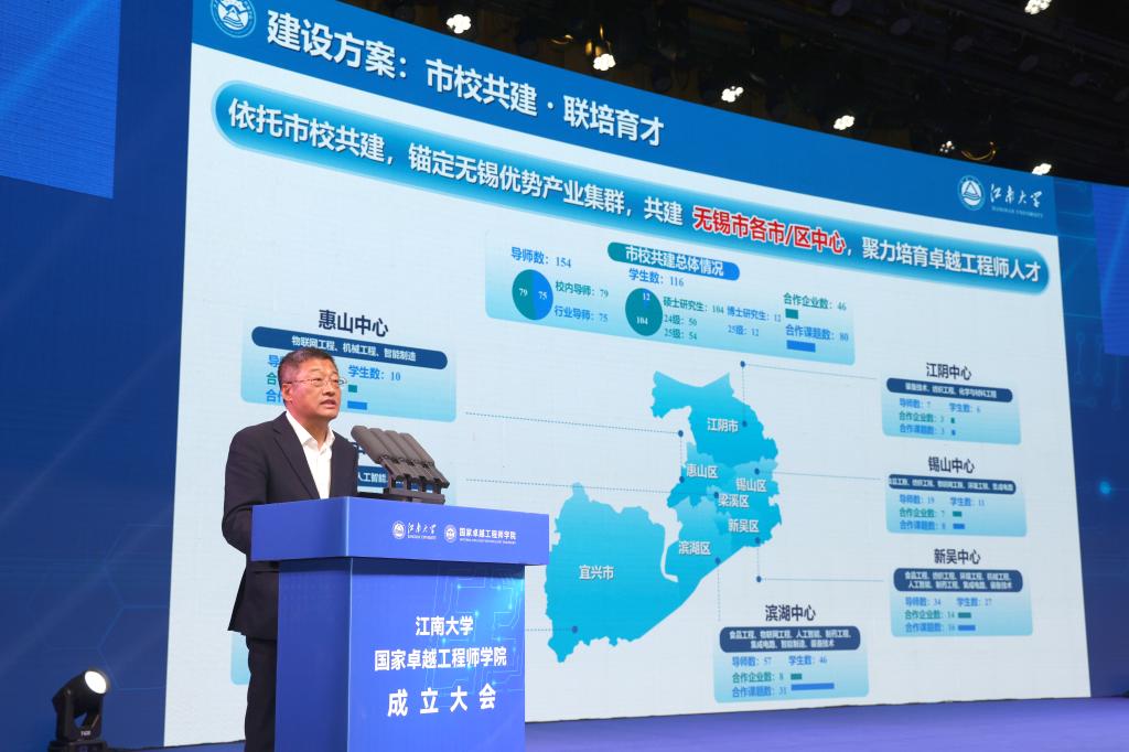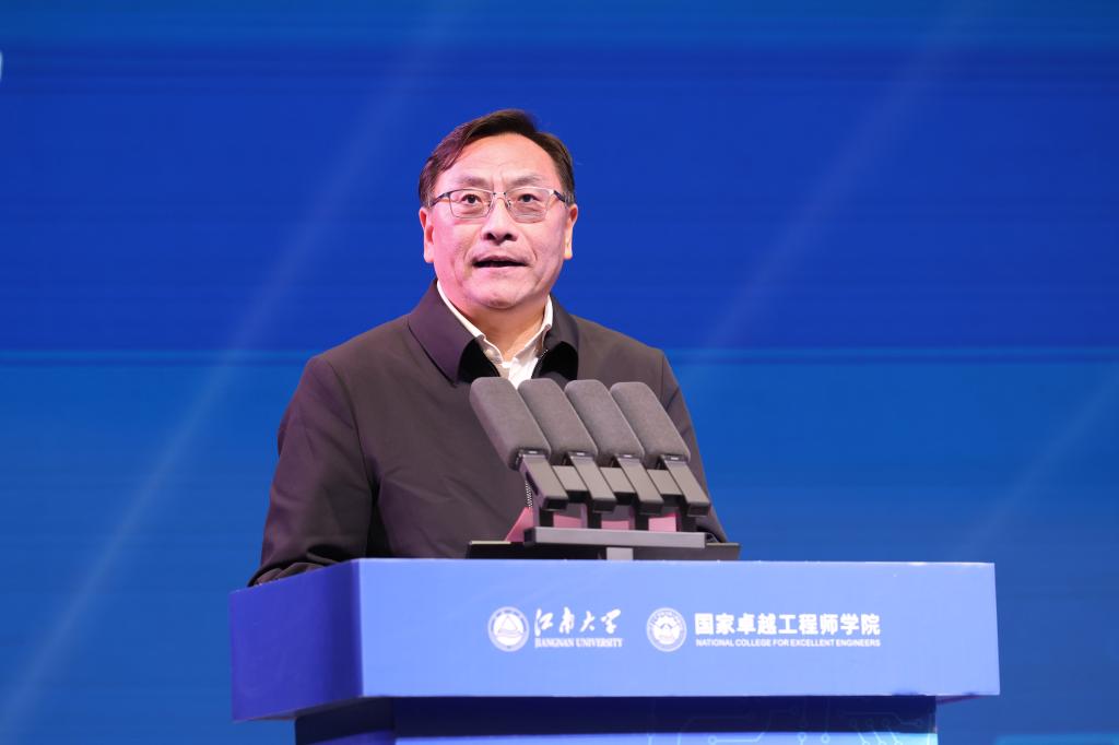 吴正国诚挚感谢各级领导、各界朋友长期以来对江南大学教育改革发展的鼎力支持。他指出,获批建设国家卓越工程师学院既是党和国家对我校办学实力、工程教育积淀及服务国家战略贡献度的充分肯定,更是一份沉甸甸的政治嘱托和时代责任。他强调,一要坚持“铸魂育人”为根本,筑牢卓越工程师的家国情怀与精神底色;二要深化“协同育人”为路径,构建产教深度融合的卓越工程师培养共同体;三要营造“文化育人”为生态,涵育鼓励创新、宽容失败的工程师成长沃土。江南大学期待与各界朋友并肩同向,把国家卓越工程师学院建设成为工程科技创新的策源地、卓越工程师成长的孵化器、校政企融合发展的示范区。