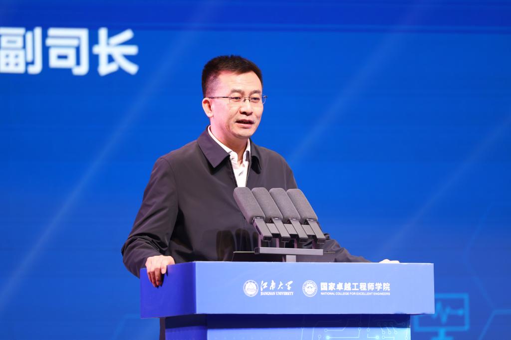 2025年12月29日,江南大学国家卓越工程师学院成立大会在江苏无锡召开。教育部学位管理与研究生教育司副司长、国务院学位委员会办公室副主任郝彤亮;江苏省教育厅二级巡视员吴仁林;无锡市人民政府市长蒋锋,市委常委、组织部部长高飞,副市长张镇,市人民政府秘书长陈寿彬、副秘书长顾文龙,发展和改革委员会、教育局、科学技术局、工业和信息化局、财政局、人力资源和社会保障局、卫生健康委员会等相关部委办局及江阴、宜兴、梁溪、惠山、锡山、滨湖、新吴等无锡各市(区)负责同志;中国保利集团有限公司董事、党委副书记张浩,华润微电子有限公司董事、党委副书记王小虎,贵州茅台酒股份有限公司党委委员、副总经理涂华彬,新兴际华集团副总工程莫莉及中储粮、中盐、国药、省农垦、苏豪、洋河、恒顺、德新、信捷、朗新、凯龙、果下等企业嘉宾;河南工业大学校长吴智深与上海交通大学、同济大学、东南大学等兄弟高校领导同仁;湖北省仙桃市人民政府副市长杜伟华;江南大学党委书记吴正国,中国工程院院士、校长陈卫及全体校领导、党委常委、校长助理,各学院、单位、部门与各附属医院主要负责同志,师生代表共约1000人出席大会。大会由校党委常委、副校长、国家卓越工程师学院院长马鑫主持。