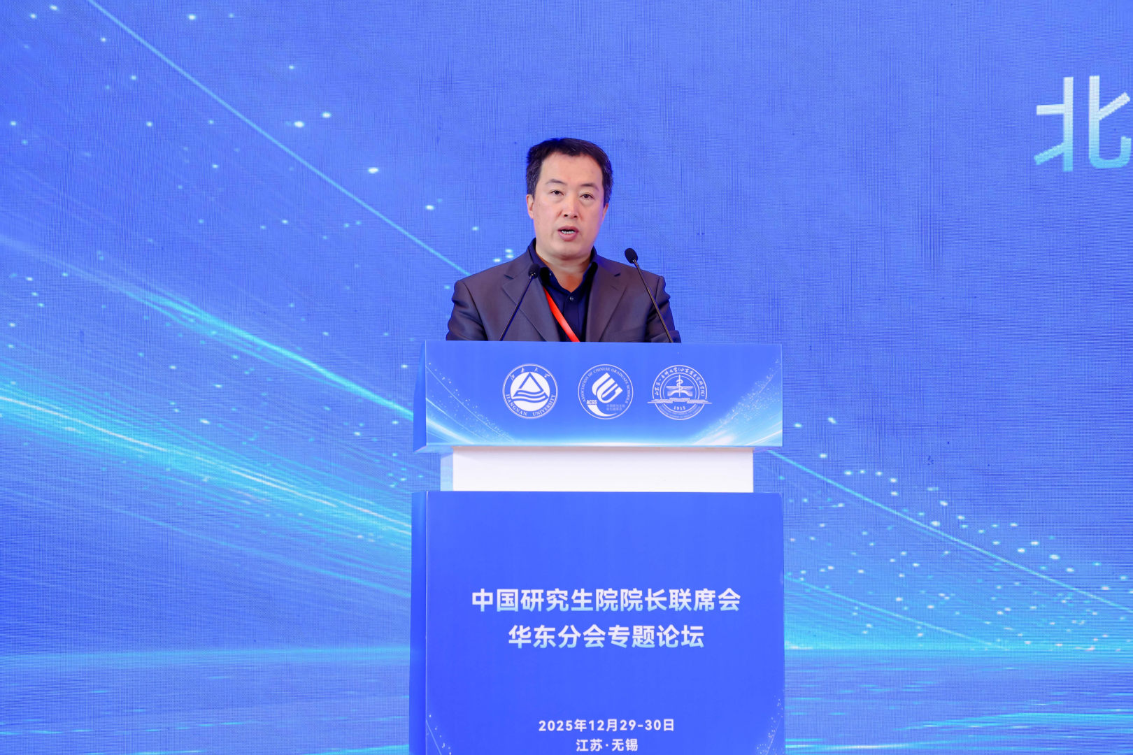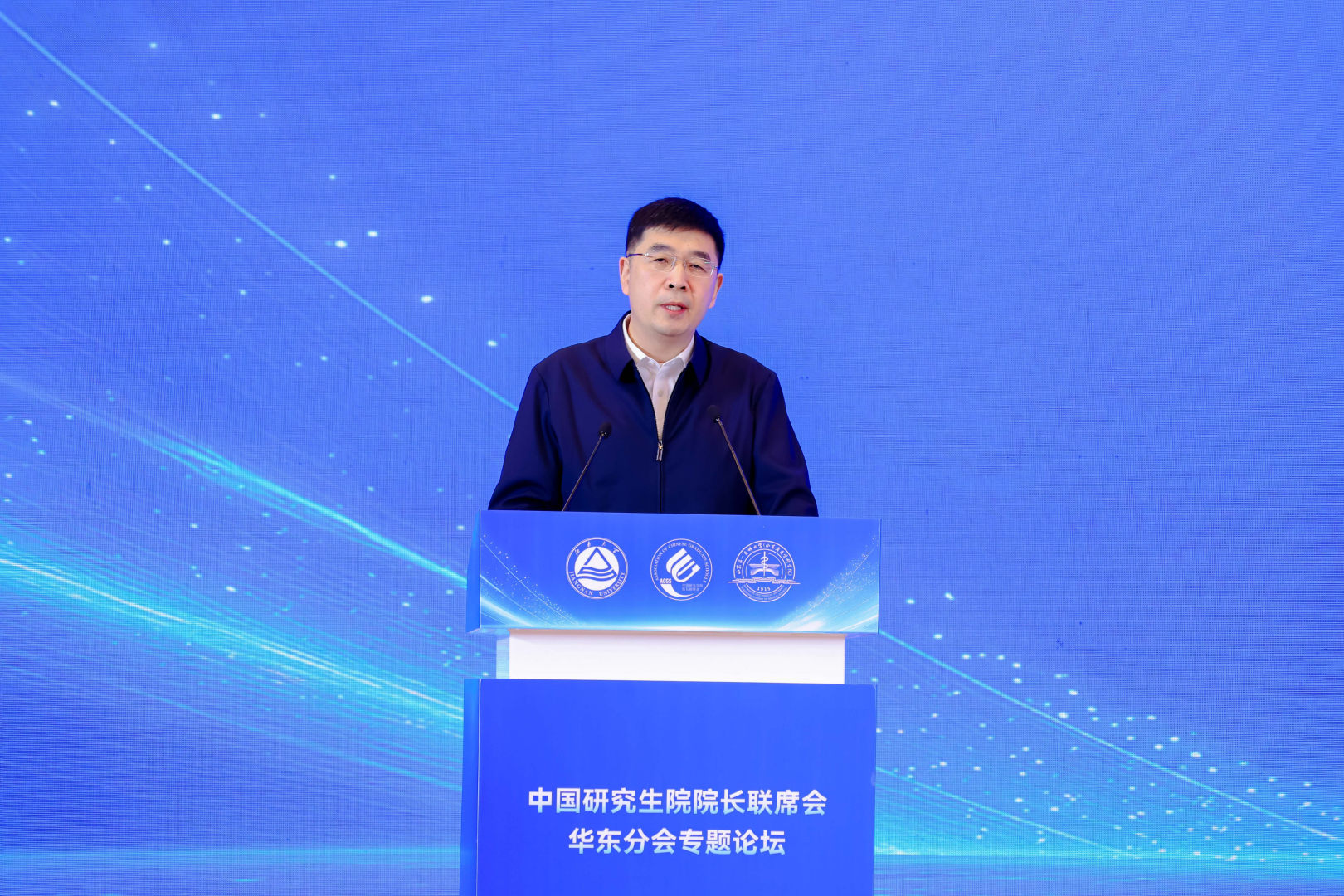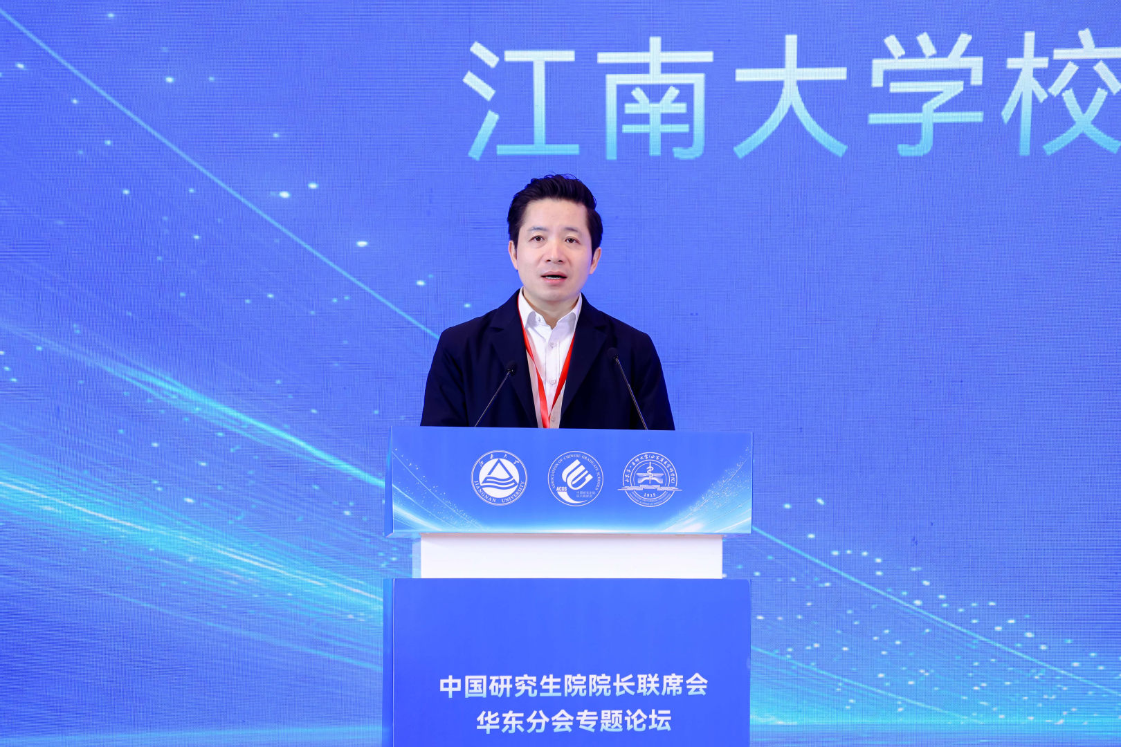 开幕式上,马鑫代表承办方江南大学对参会的各位领导、嘉宾表示热烈欢迎和诚挚感谢。他立足校本,系统介绍了江南大学在专业学位人才培养方面的探索与实践,并表示学校将以此次论坛为契机,深化与华东地区兄弟院校的协作联动,共同为服务国家重大战略需求、推动新时代研究生教育改革发展贡献力量。