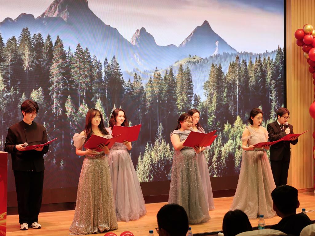 联欢会在同学们欢快合唱的《拜新年》节目中正式拉开帷幕。广大师生积极参演,既有入企学子专程返校带来的精彩表演,也有在校生和推免生献上的各类才艺,更有老师们和兼职辅导员定格的难忘瞬间。同学们的开场舞蹈节奏欢快且充满童趣,引得在场观众忍俊不禁。一曲《倔强》唱出年轻人心中的自信与坚守。学生助理演绎的《是我,也是我们》歌声婉转,寓意悠远。孙子文副院长等师生代表共同朗诵的《卓越之路・江南新章》节奏铿锵有力,充满真挚情感。陈裕老师演唱的《爱拼才会赢》彰显江大卓工人拼搏向上的气质内涵。李雷副书记和沈丹老师深情对唱的《如愿》祝福祖国山河无恙,师生顺遂平安。奚晓岚书记的一曲《今夜无眠》将晚会气氛推向高潮。吴小俊院长的吉他弹唱《同一首歌》引发现场师生强烈共鸣,为本场活动画上圆满句号。