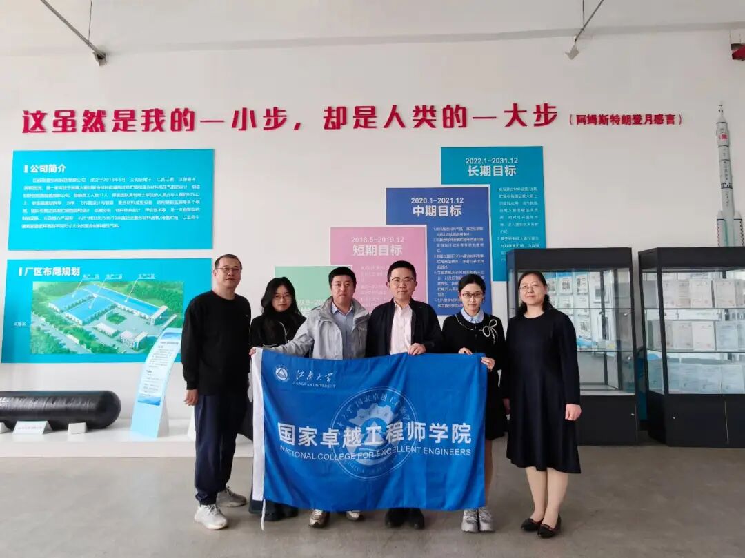 为不断夯实产教融合育人机制,有效掌握驻企学生的项目进展、思想动态与身心状况,4月17日,江南大学国家卓越工程师学院党委副书记兼副院长李雷、培养与质量建设办正科级干部曲平、党政办胡卉君一行,先后前往位于泰州的江苏苏萨食品有限公司和位于江阴的江苏君澄空间科技有限公司走访调研。校内导师,食品学院教授姜启兴、副研究员刘晓丽,纤维工程与装备技术学院副教授李世超等陪同调研。