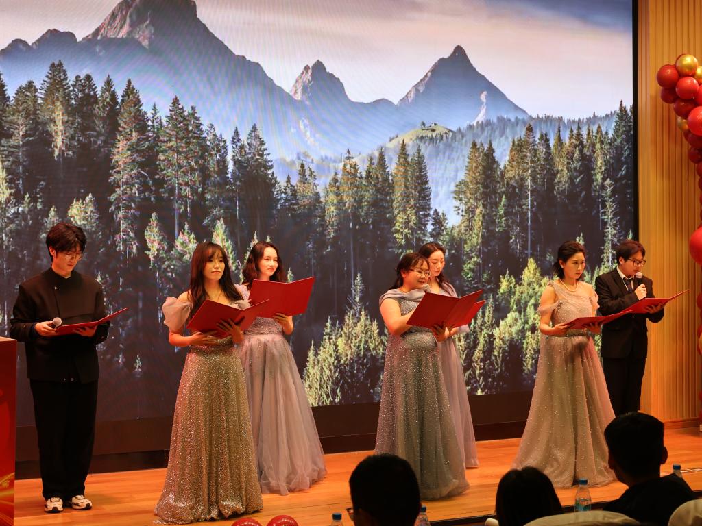 联欢会在同学们欢快合唱的《拜新年》节目中正式拉开帷幕。广大师生积极参演,既有入企学子专程返校带来的精彩表演,也有在校生和推免生献上的各类才艺,更有老师们和兼职辅导员定格的难忘瞬间。其中,《企鹅舞》节奏欢快且充满童趣,引得在场观众忍俊不禁。一曲《倔强》唱出年轻人心中的自信与坚守。学生助理演绎的《是你,也是你们》歌声婉转,寓意悠远。孙子文副院长等师生代表共同朗诵的《卓越之路・江南新章》节奏铿锵有力,充满真挚情感。陈裕老师演唱的《爱拼才会赢》彰显江大卓工人拼搏向上的气质内涵。李雷副书记和沈丹老师深情对唱的《如愿》祝福祖国山河无恙,师生顺遂平安。奚晓岚书记的一曲《今夜无眠》将晚会气氛推向高潮。吴小俊院长的吉他弹唱《同一首歌》引发现场师生强烈共鸣,为本场活动画上圆满句号。
